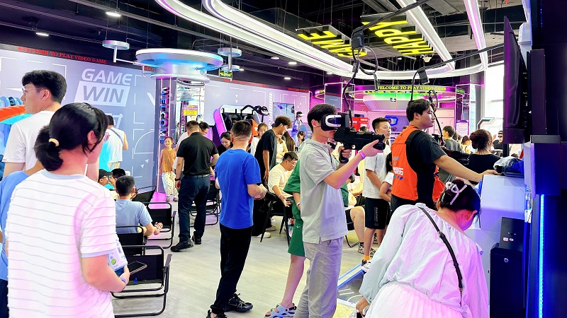 其中,二樓打造的“動(dòng)感競(jìng)技場(chǎng)”,可讓消費(fèi)者體驗(yàn)保齡球精準(zhǔn)碰撞的樂(lè)趣,在“槍王對(duì)決”和“實(shí)彈射擊”中感受腎上腺素飆升,挑戰(zhàn)“滑索”的速度與“射箭”的專注,暢玩Switch2/PS5主機(jī)游戲,或在“炫動(dòng)單車(chē)”“金剛戰(zhàn)士”“巔峰狙擊”中釋放活力,更可在“落日休憩區(qū)”憑欄觀海,動(dòng)靜皆宜;三樓打造了“科技社交匯”,讓消費(fèi)者步入VR館即可開(kāi)啟奇幻冒險(xiǎn),通過(guò)“宇宙一號(hào)”“傘途”“雙人360”“樂(lè)享滑雪”等7大尖端設(shè)備穿梭虛實(shí)之境。同時(shí),“聲控派對(duì)”“開(kāi)放式舞臺(tái)”點(diǎn)燃社交熱情,桌游、麻將、碰碰車(chē)、臺(tái)球、飛鏢、模擬網(wǎng)球、“悅動(dòng)格子”“360°單車(chē)”等豐富選擇滿足不同興趣群體,更有私密“轟趴房”和舒適“太空艙”提供專屬聚會(huì)與休憩空間。